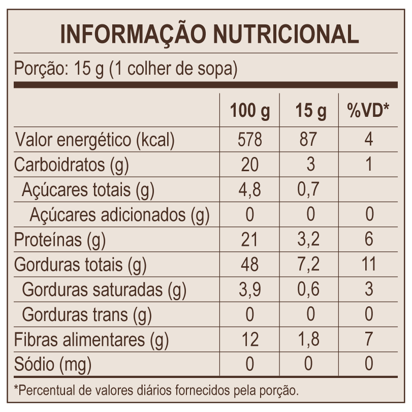 Armazenamento: Conservar em local seco, fresco e protegido da luz solar. Após aberto, mantenha em recipiente bem fechado. Pode ocorrer variação entre os lotes do produto, por se tratar de um alimento natural, o que não afeta a qualidade do mesmo.