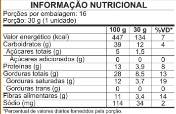 Ingredientes: Amendoim, cobertura de chocolate branco (gordura vegetal fracionada, leite desnatado em pó, soro de leite em pó, polidextrose, edulcorante maltitol, emulsificantes lecitina de soja e poliglicerol polirricinoleato e aromatizante), leite em pó desnatado, chocolate branco, polidextrose, gordura vegetal, goma ácacia, pasta de amendoim, farinha de limão siciliano, aromatizante, edulcorantes xarope de sorbitol, xilitol, xarope de maltitol e taumatina, emulsificante lecitina de girassol, antioxidantes extrato de alecrim, mistura concentrada de tocoferóis e óleo de girassol, acidulante ácido cítrico e conservante sorbato de potássio.