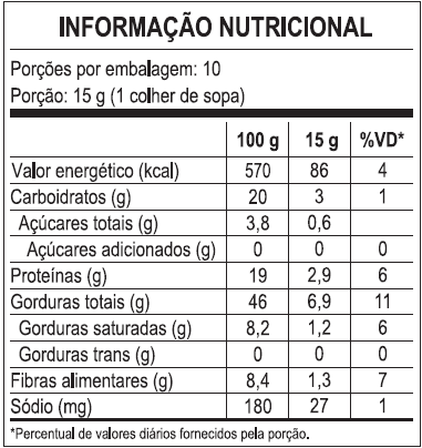 Sugestão de consumo: perfeita combinação com frutas, no iogurte, com cereais, aveia, adicione nas receitas de pães e bolos, saladas e farofas para dar uma crocância especial.