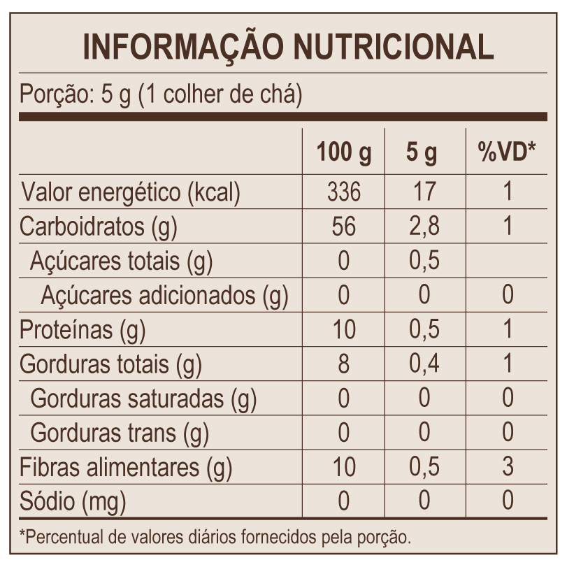 Alérgicos: Pode conter aveia, amêndoas, castanha de caju, castanha do Pará, trigo, centeio, cevada, leite, amendoim, avelãs, macadâmia, nozes, pecãs, pistaches, pinoli e latex natural. CONTÉM GLÚTEN.